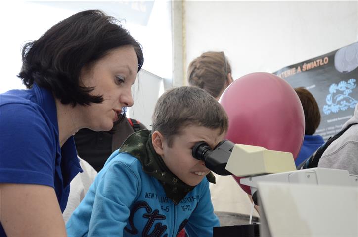 Widzowie mogli samodzielnie wykonać preparaty mikroskopowe i prowadzić obserwacje mikroskopowe. Wykonano wspólnie preparaty z cebuli, włosów i kryształków cukru. Uczestnicy obserwowali również preparaty komórek i tkanek wykonane przez naukowców z naszego Instytutu, które w świetle mikroskopu, w odpowiednim powiększeniu, prezentują się inaczej niż się tego spodziewamy. Natomiast w świetle UV można było zobaczyć rozdział kwasu nukleinowego – DNA na mniejsze fragmenty, co jest wykorzystywane powszechnie w kryminologii.