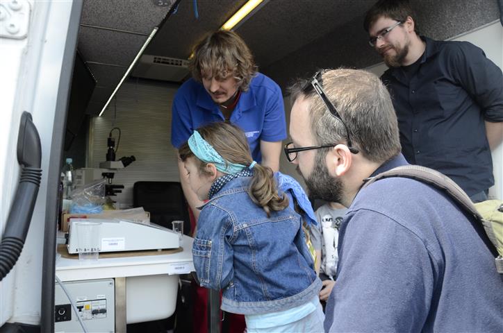W mobilnym laboratorium zaprezentowano wykorzystanie światła jako narzędzia analitycznego w obliczaniu koncentracji komórek w płynie poprzez przepuszczanie światła i obserwacji ile z niego zostanie rozproszone. Im większe rozproszenie tym większa ilość komórek. Mając odpowiednie krzywe, można wyliczyć dzięki takim spektrofotometrycznym odczytom, dokładną ilość komórek znajdujących się w roztworze.