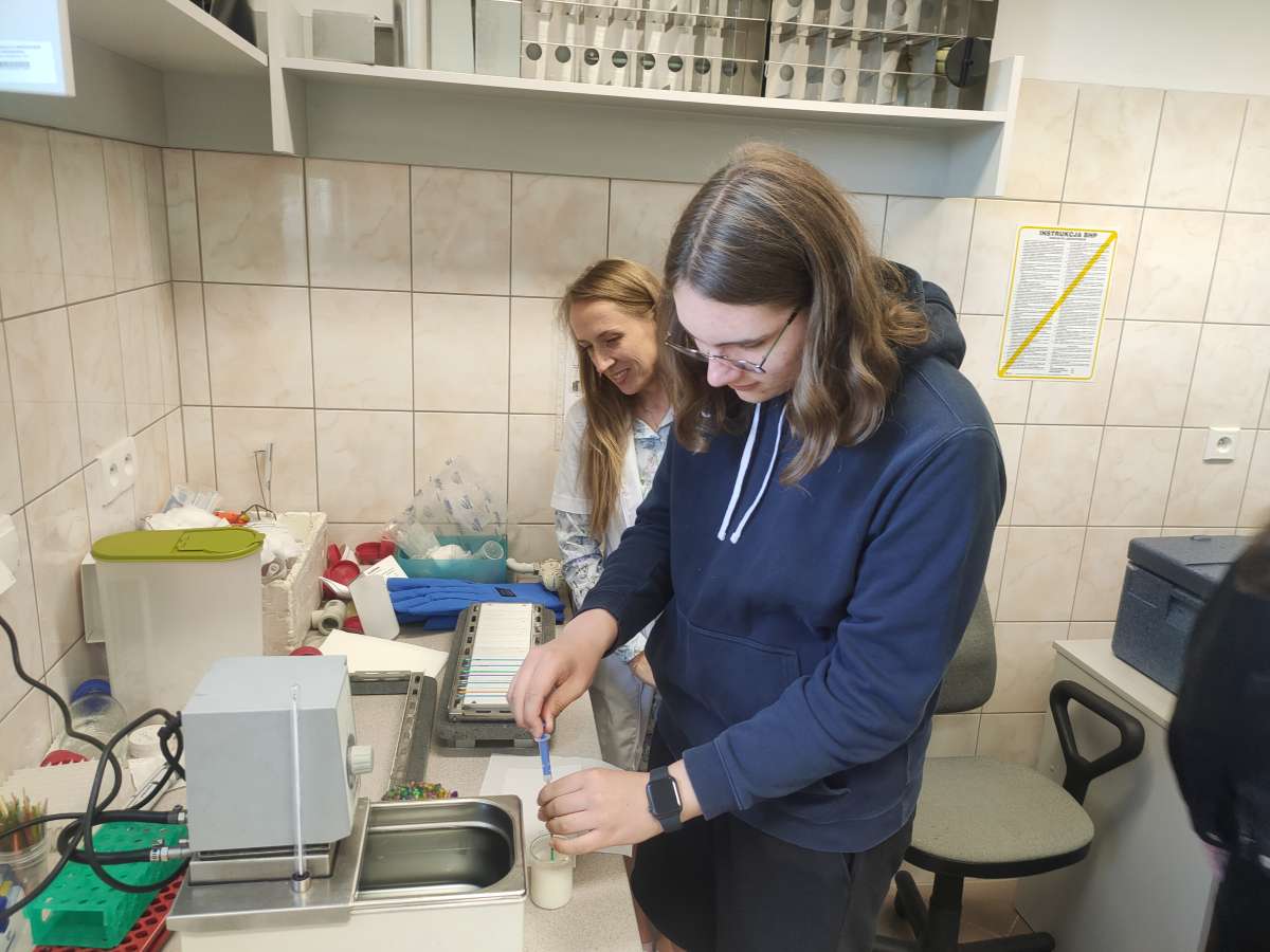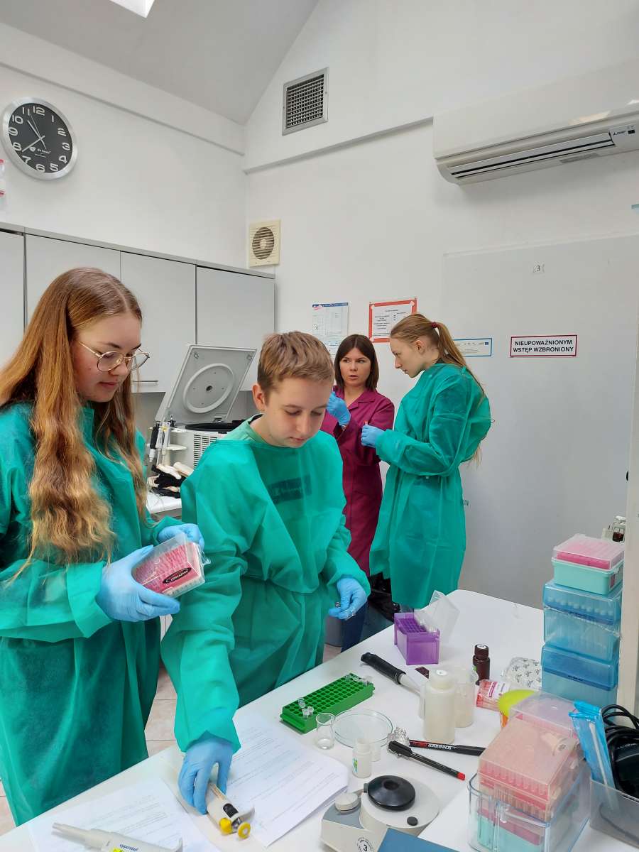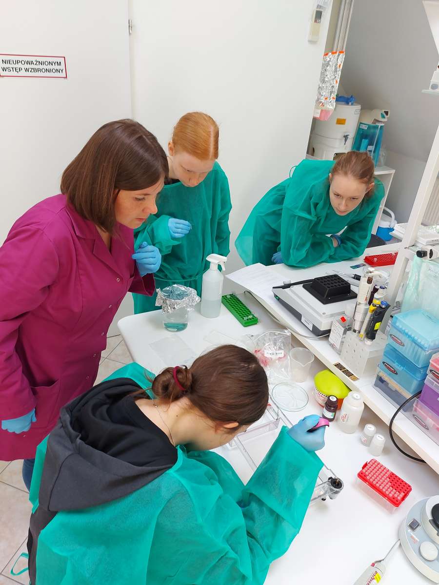 19 maja br. uczniowie pierwszej klasy XII Uniwersyteckiego Liceum Ogólnokształcącego im. Marii i Georga Dietrichów wraz z wychowawczynią Agnieszką Nowicką odwiedzili Zespół Biologii Gamet i Zarodka IRZiBŻ, gdzie mieli niepowtarzalną okazję samodzielnie przeprowadzić doświadczenia z wykorzystaniem technik biologii molekularnej.