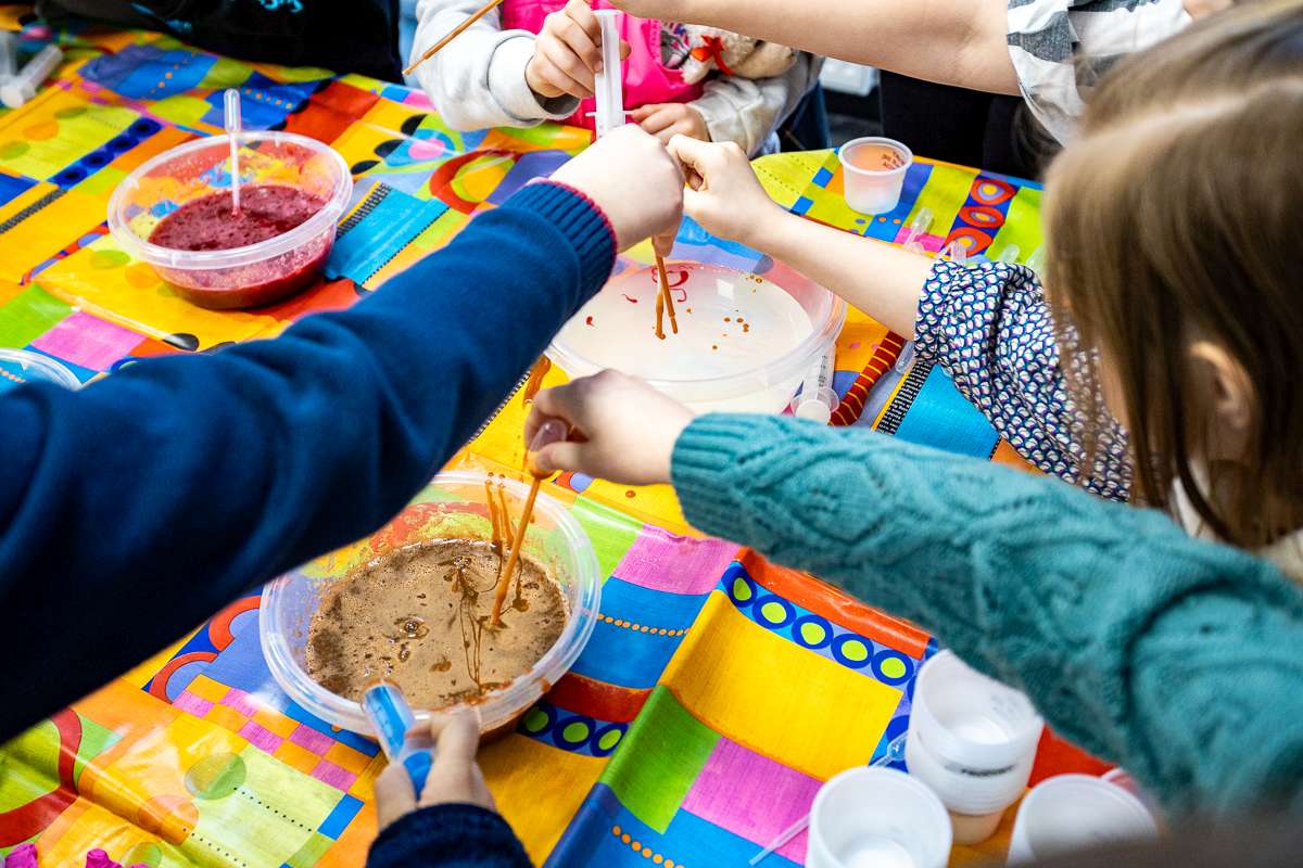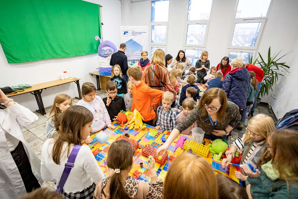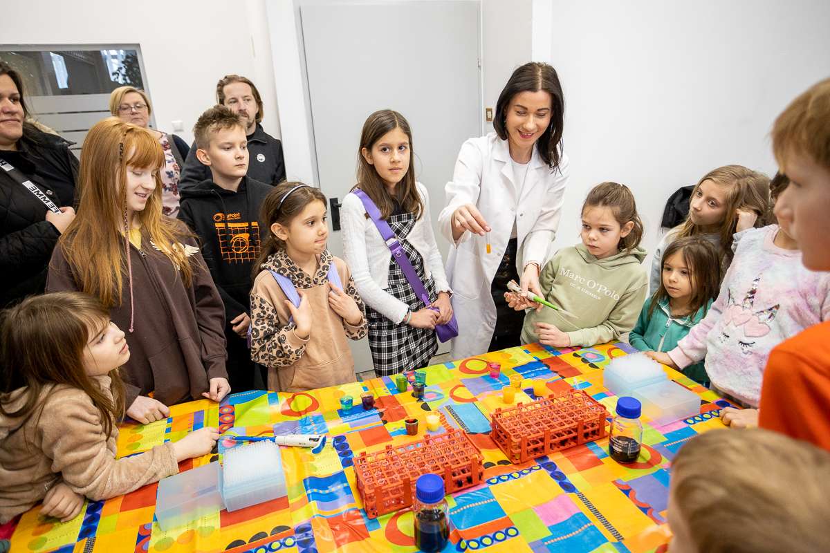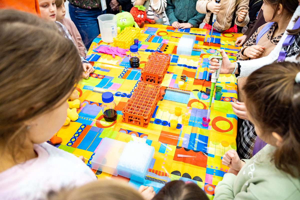 Na studentów czekała również część warsztatowa, w której mogli wcielić się w młodych chemików. Pod okiem mgr inż. Kamili Penkacik dzieci badały magiczne przeciwutleniacze oraz tworzyły molekularne perły.